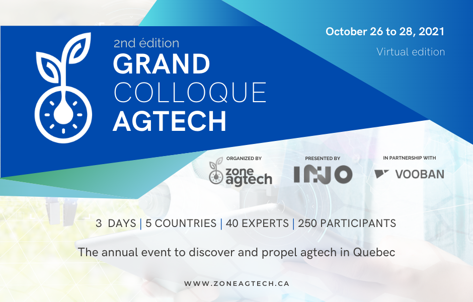 2ND EDITION OF THE GRAND COLLOQUE AGTECH DU QUÉBEC | The Zone Agtech unveils the program for the annual meeting of innovative agricultural technologies in Quebec. 16 septembre 2021