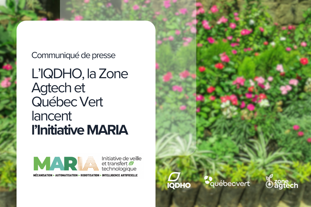 L’IQDHO, la Zone Agtech et Québec Vert lancent l’Initiative MARIA pour accélérer l’adoption des technologies d’horticulture ornementale 19 août 2024