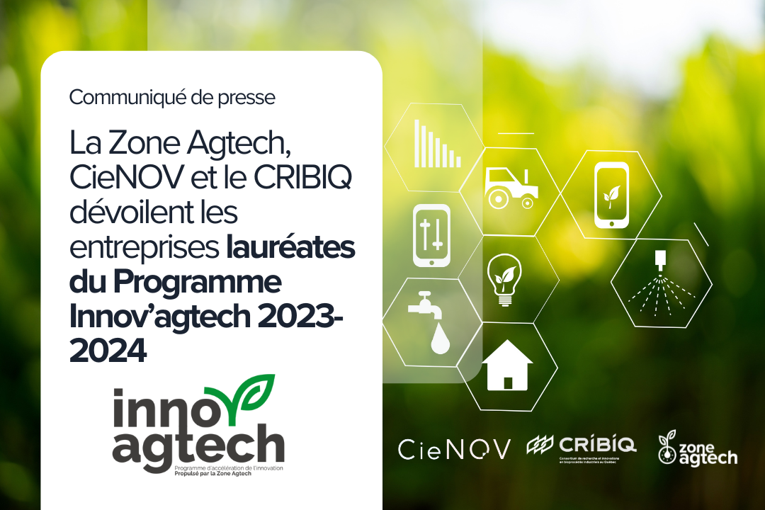 La Zone Agtech, CieNOV et le CRIBIQ dévoilent les entreprises lauréates du Programme Innov’agtech 2023-2024 26 août 2024