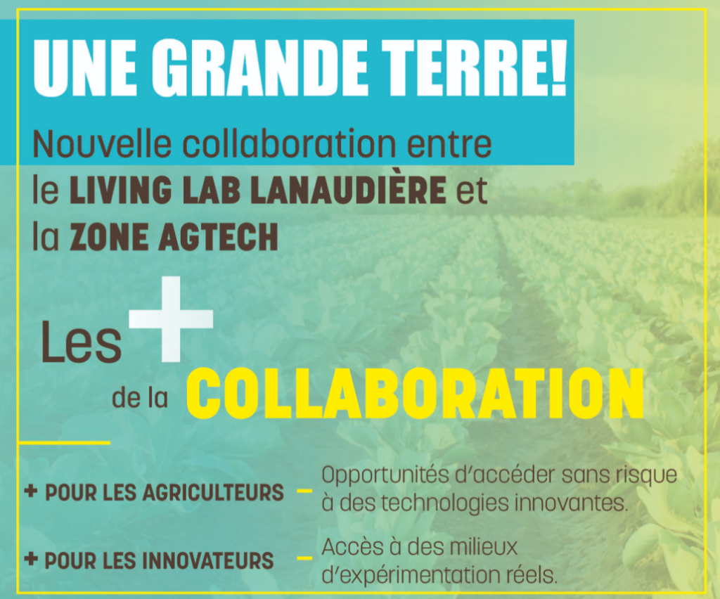 La Zone Agtech et le Living Lab Lanaudière déploieront ainsi une série d’initiatives visant à soutenir le maillage de producteurs agricoles lanaudois et d’innovateurs agtechs. Les entreprises qui rejoindront la Zone Agtech auront ainsi accès aux services de laboratoires d’essai (microlabs) du Living Lab Lanaudière, et, simultanément, les membres du Living Lab Lanaudière auront accès aux dernières technologies agricoles innovantes développées au Québec. Les deux organismes estiment que cette collaboration stratégique permettra d’accélérer le développement et le transfert d’innovations qui répondront aux défis actuels de l’agriculture et qui permettront aux producteurs agricoles de produire plus efficacement dans le nouveau contexte.